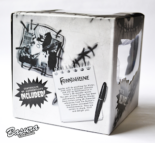 El día de su presentación se lanzaron varios artículos exclusivos, los cuales estarían sólo en venta en la expo (como es bien sabido que cada año la Comic Con está repleta de artículos super limitados y exclusivos para venta ahí mismo), pero uno de los artículos que causaron más sensación e interés en el público es precisamente la figura que motiva ésta entrada (y la que acabas de ver arriba): una edición especial y limitada a sólo 1,000 ejemplares de Sparky, el tierno protagonista de la película, disfrazado de dinosaurio, tal cual se ve en una de las secuencias en la que su dueño, Victor, hace un gracioso cortometraje con él, usándolo como un monstruo que destruye una gran ciudad pequeña, elaborada con cajas y otros materiales caseros.